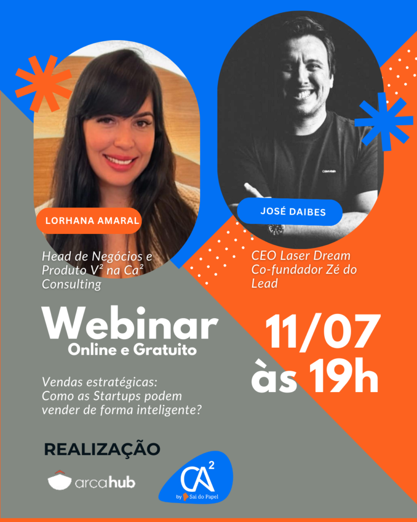 Nossa Head LORHANA AMARAL de Negócios e Produto da CA² Consulting, junto com o JOSÉ DAIBES, CEO Laser Dream do Zé do Lead estarão ao vivo para compartilhar sobre Como fazer a sua Startup crescer sem dores. Venha saber o que são Processos Estratégicos.