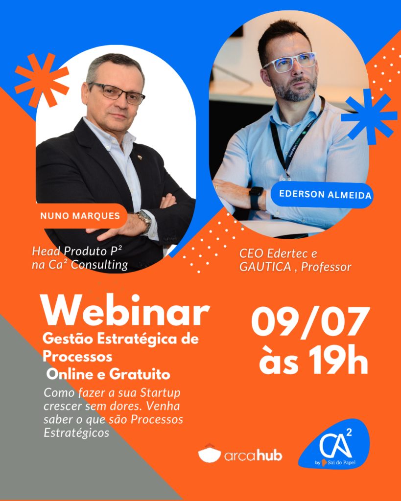 Nosso Head Nuno Marques, junto com o Ederson Almeida CEO Edertec e GAUTICA, Professor estarão ao vivo para compartilhar sobre Como fazer a sua Startup crescer sem dores. Venha saber o que são Processos Estratégicos.